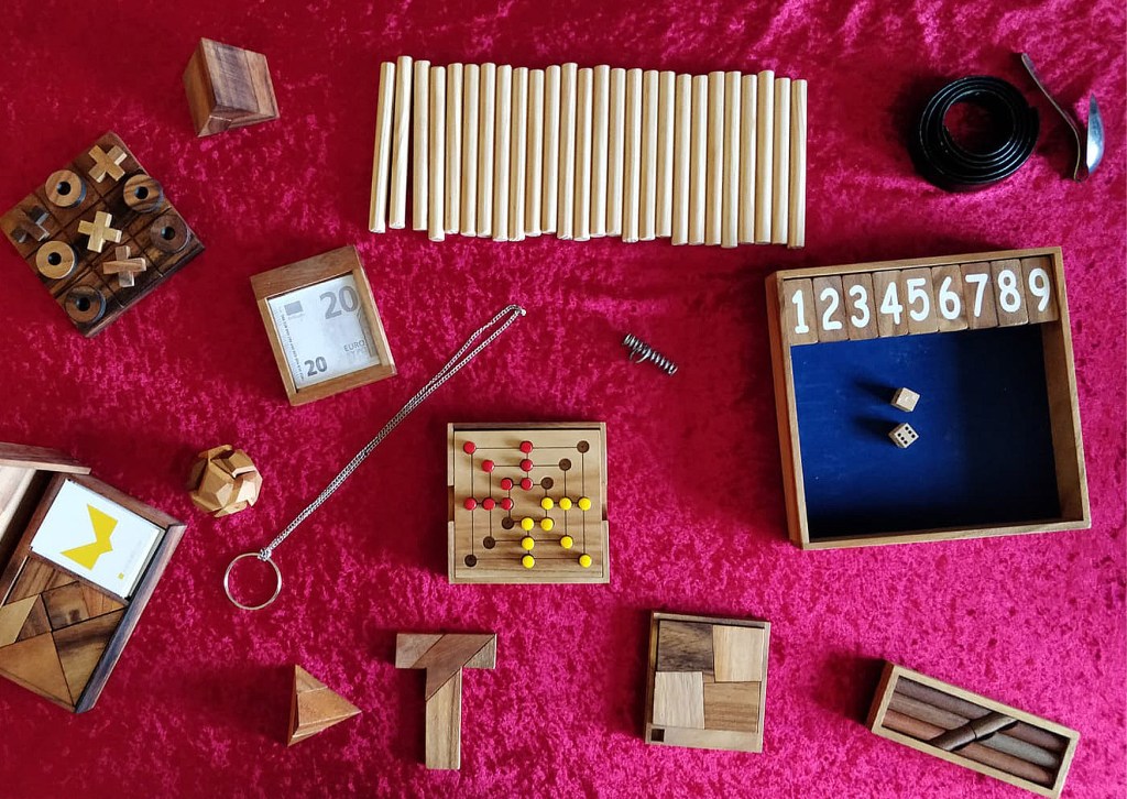 Nous disposons d’un large éventail de casse-tête en bois à résoudre. Que ce soit en individuel ou en groupe, venez vous amuser à résoudre nos puzzles. Nous proposons également quelques jeux de stratégie à l’instar de Fort Boyard comme le célèbre jeu de Nim.