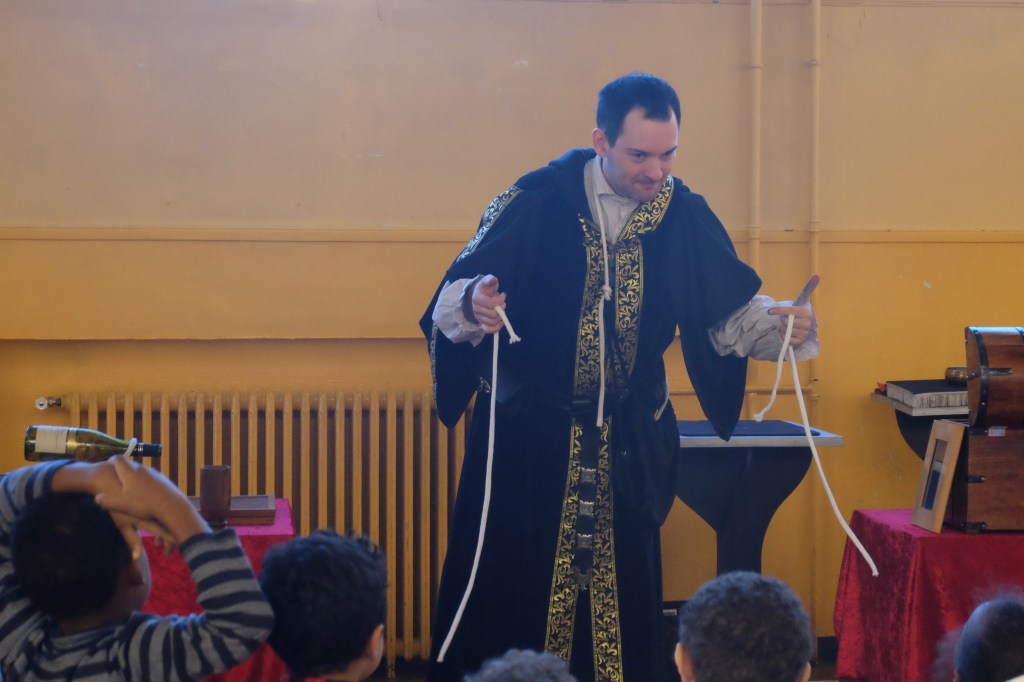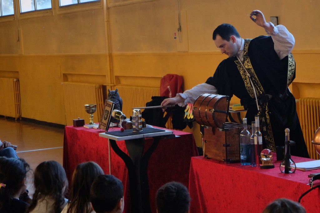 Dans un décor mêlant différents accessoires, le magicien/comédien fera des démonstrations et expériences magiques en traversant des époques datant de -2500 av JC jusqu’à aujourd’hui. Durant le spectacle, il changera de costumes soulignant ainsi la mode vestimentaire des différentes périodes. C’est un spectacle éducatif et interactif, qui permet de voir l’évolution d’une pratique plurimillénaire qui n’était pas toujours destinée à l’amusement et à l’étonnement.