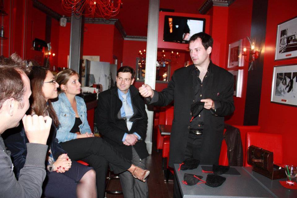 - Déambulation: Le magicien se déplace parmi les convives et présente des tours et expériences magiques de type close-up (magie de près où tout se passe sous les yeux des spectateurs). Ce type d’événement est adapté au cocktail dinatoire, réception privée, événement d’entreprise.